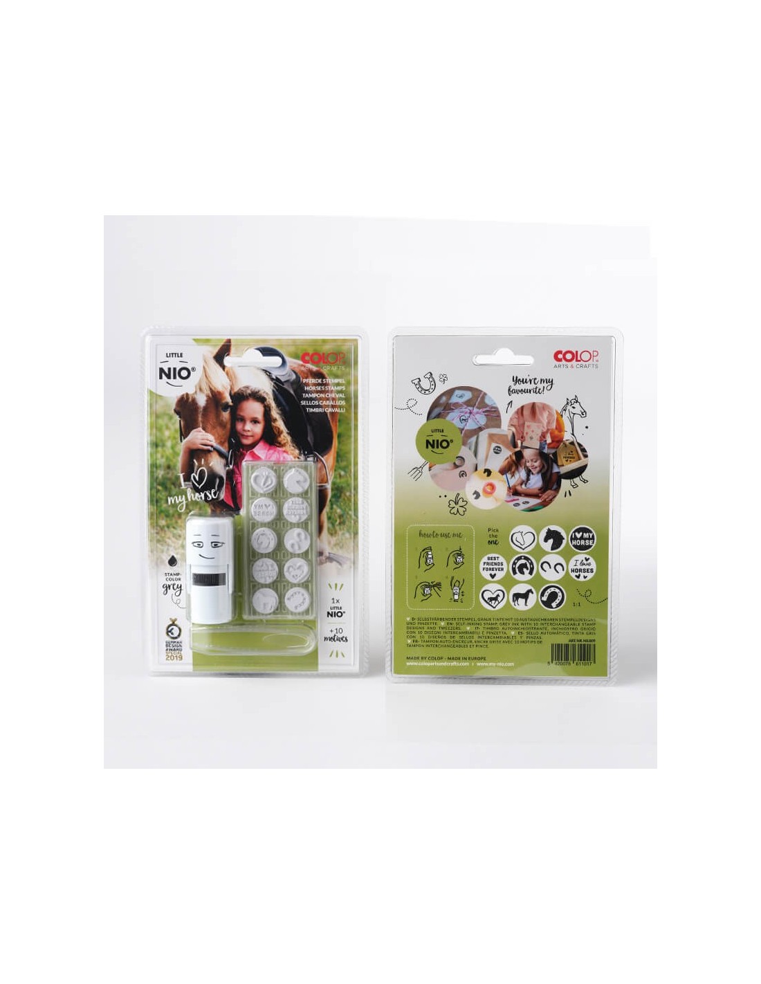 Little Nio Konie to pieczątka z zestawem dziesięciu wymiennych wzorów o tematyce jeździeckiej. Działaj wyobraźnią i ozdabiaj swoim ulubionym motywem co tylko zechcesz! Pieczątki przedstawiają dumne i szlachetne zwierzęta jak i ich atrybuty. Konie uczą odpowiedzialności, systematyczności i dyscypliny, koją nerwy oraz rozwijają wrażliwość. Dziel się swoją pasją, stempluj i zarażaj innych miłością do koni!
