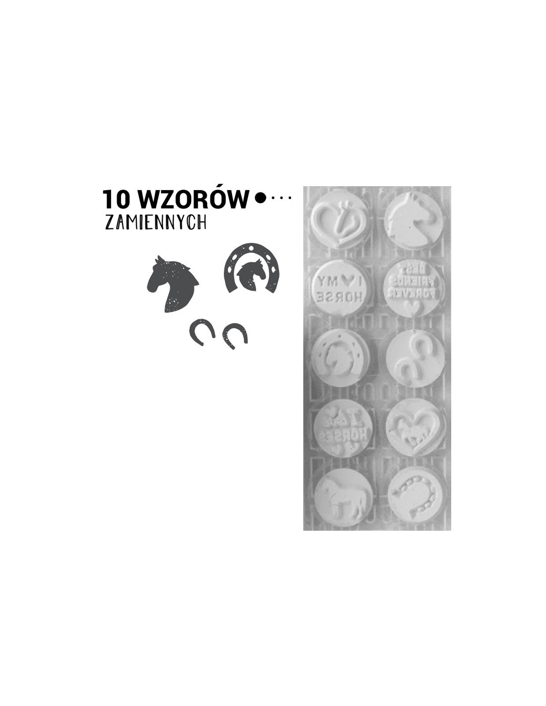 To produkt wysokiej jakości. Pieczątka zawiera 10 wzorów wymiennych z wygrawerowanymi wzorami o tematyce konnej.